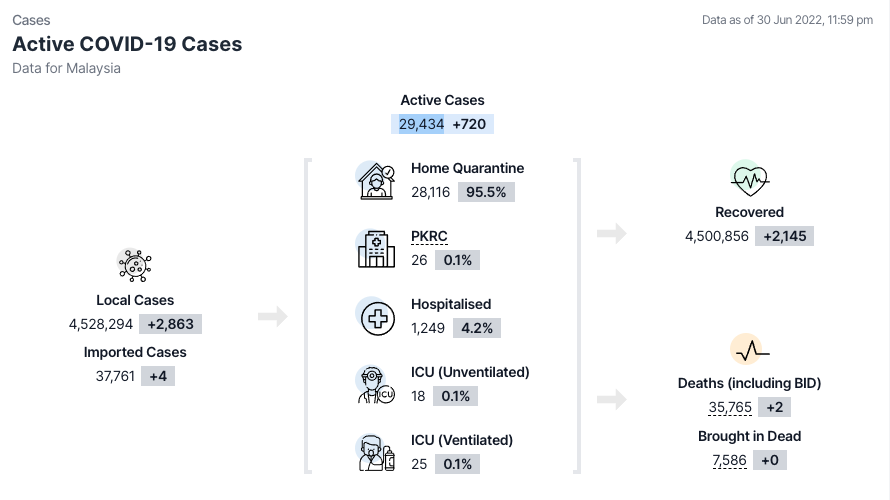 卫生部COVIDNOW网站通报,截至30日11.59pm,我国新增 #2867宗,累计病例至今 #4,566,055宗,再报2人死。