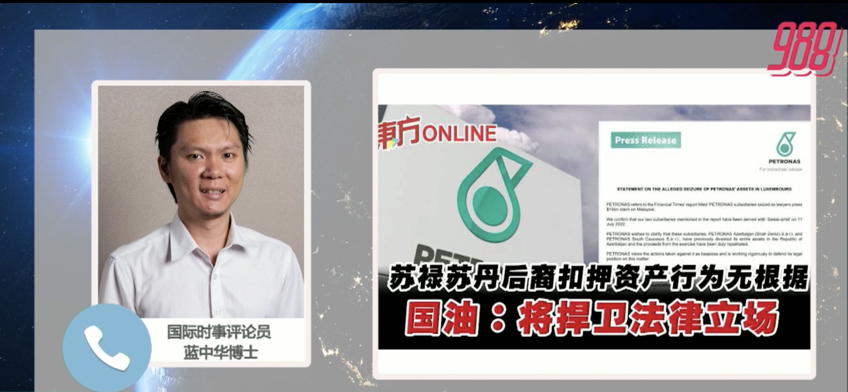 国油两家在卢森堡的子公司资产遭苏禄苏丹后裔通过法律途径扣押引起哗然,大马政府第一时间取得临时庭令,暂缓这个对苏禄苏丹后裔有利的判决;而国际时事评论员蓝中华博士形容,这个判决行为极有争议性,甚至会让“世界大乱”。