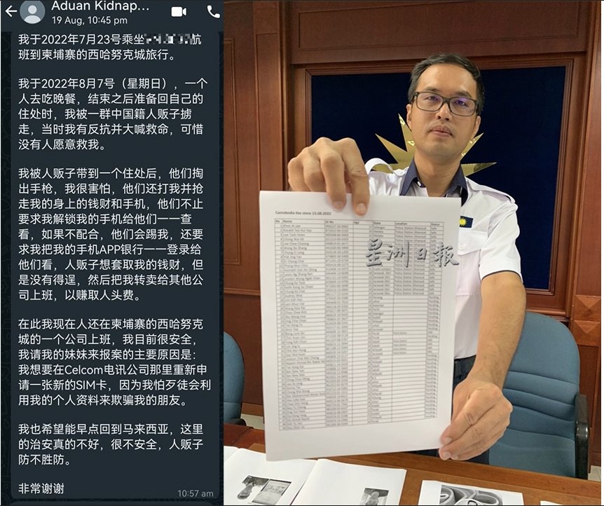 李翰霖指出,从8月15日至今,他接获的求助及全球反诈骗组织(GASO)提交的名单,共有49大马人受困在柬埔寨,其中包括3名巫裔,余者皆为华裔,年龄介于17岁至43岁之间,以吉隆坡及砂拉越人最多,目前确认获救的是22人。