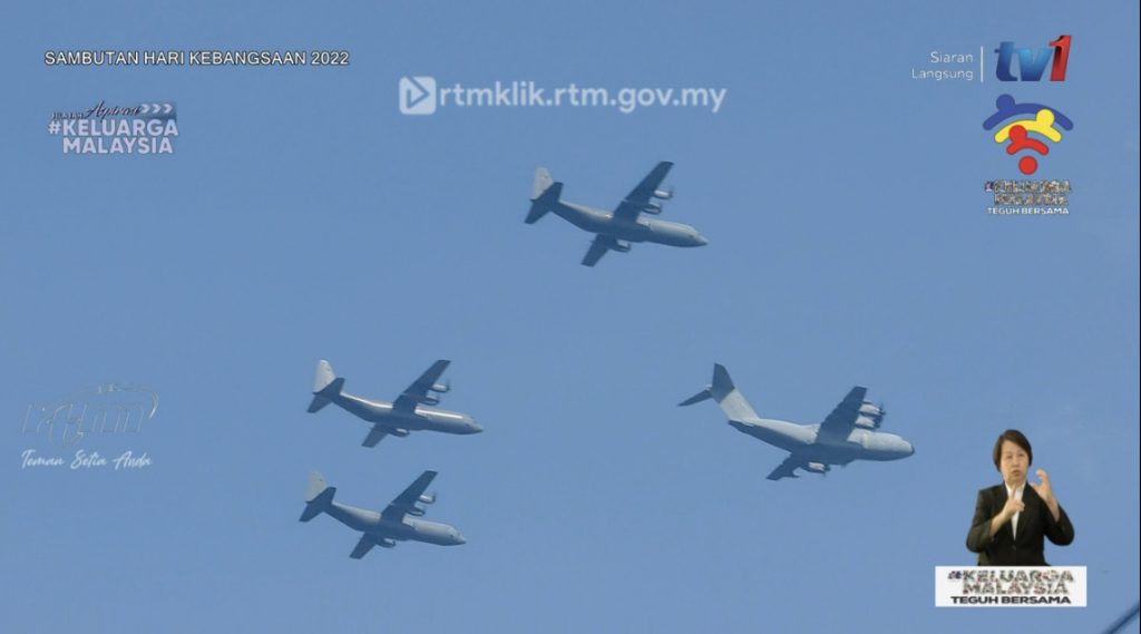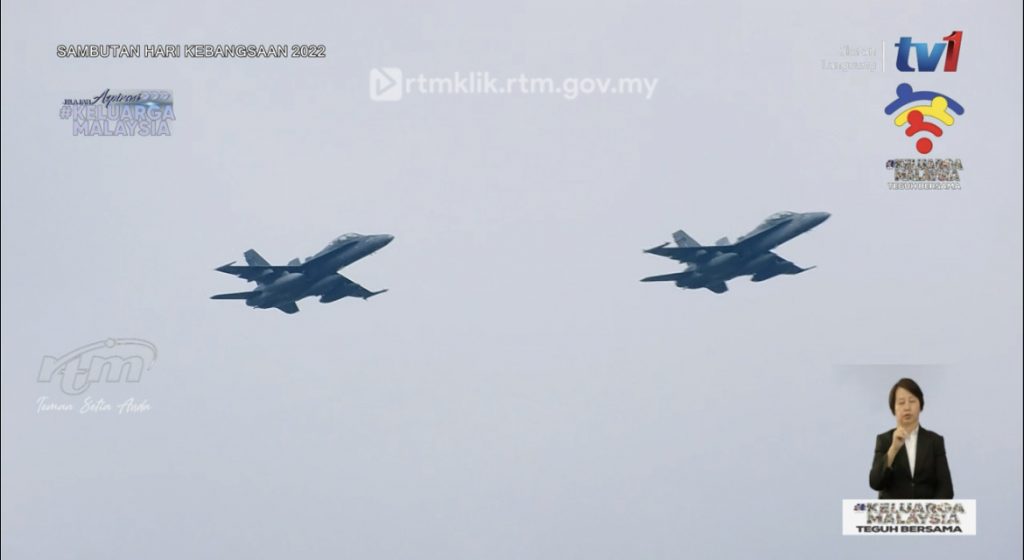 接下来则是各政府部门、大马武装部队、海军、空军、皇家警察、国家运动员和各制服团体代表献上铜鼓乐队、操步及花式飞行表演。