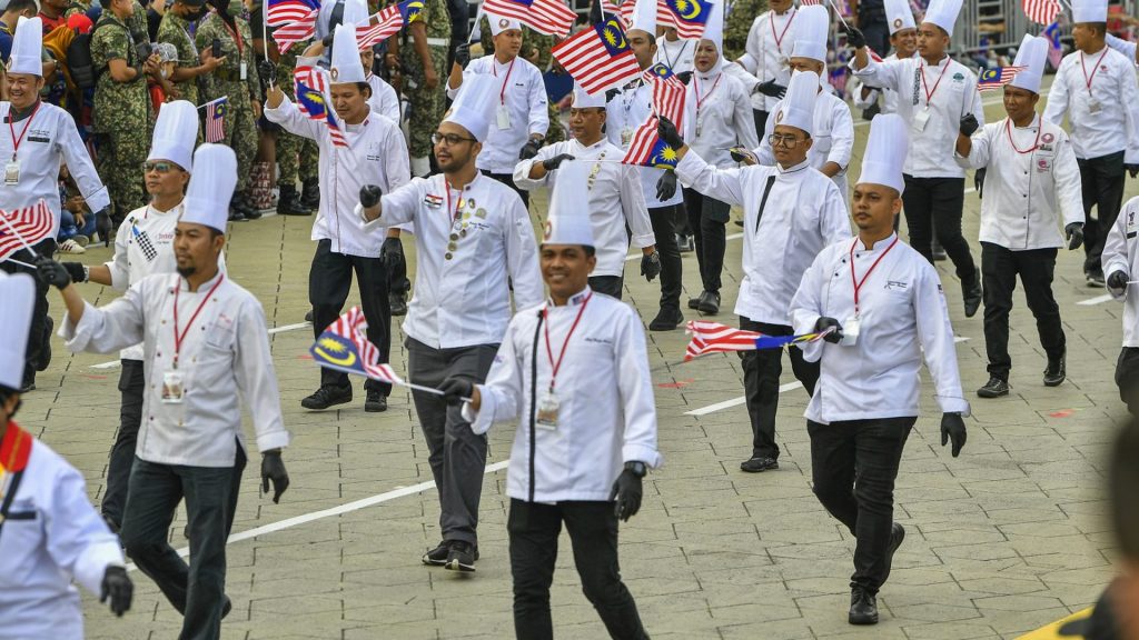 参加游行的来自大马厨师公会的40名穿着厨师帽、白衣黑裤厨师也来参与国庆日游行庆典,这是厨师首次参与;在我国面对疫情时,厨师也在背后默默付出,为医院的前线人员及病人准备食物。
