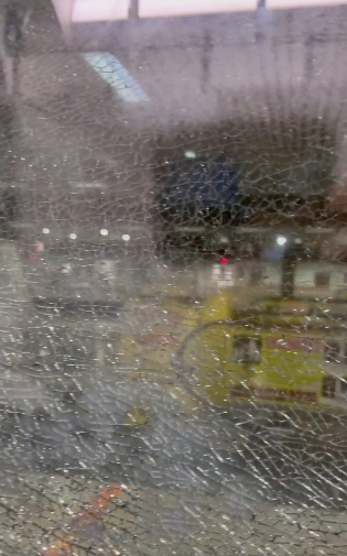 一名乘客在社媒上传电动火车的车窗出现严重裂痕及沾满黄色不明液体的受损情况,也附上2015年的一则车窗遭蓄意破坏的相关报道,这名乘客感叹:“8年了,出现严重裂痕的车窗还没修好……”