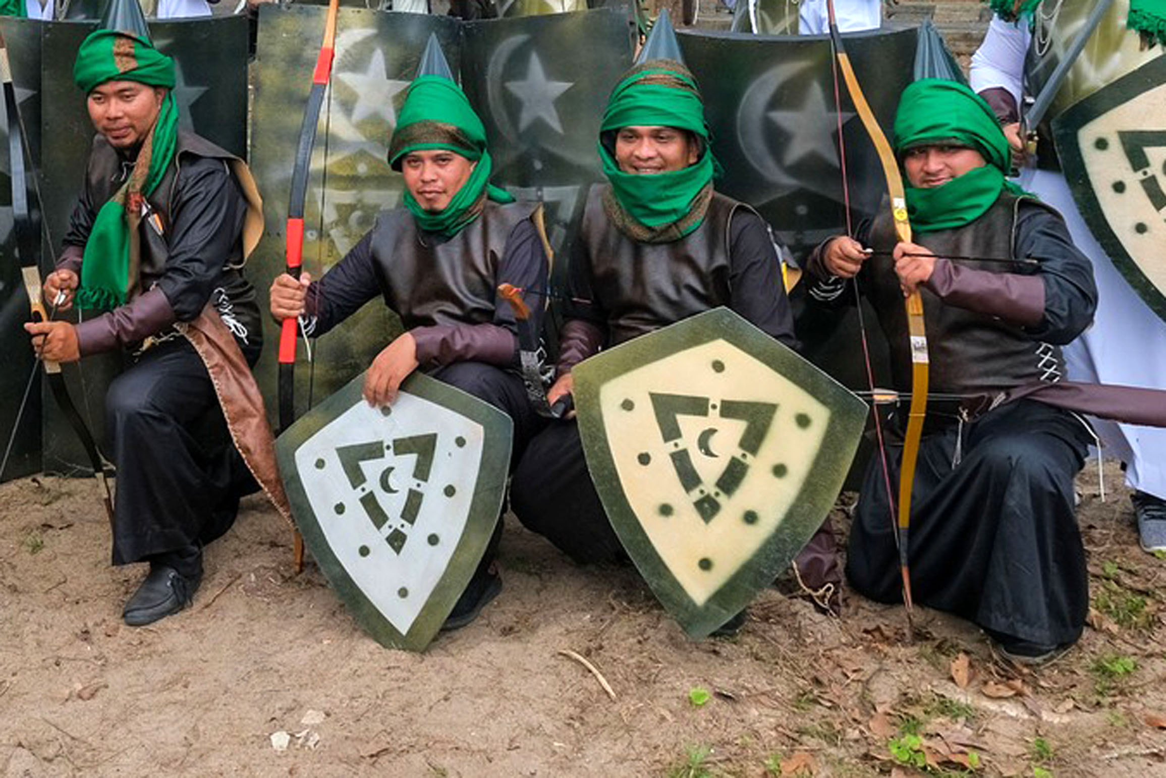 伊青登州团员在17日(周五)一连两天在士兆参与“登州伊斯兰青年集会”(HIMPIT),其中一些游行队伍是以一身圣战士打扮,手持长剑、长矛、弓箭及盾牌等武器参与游行,现场照片经社媒广传后,引发各界热议,但无法确定有关武器的真伪及是否仿制。