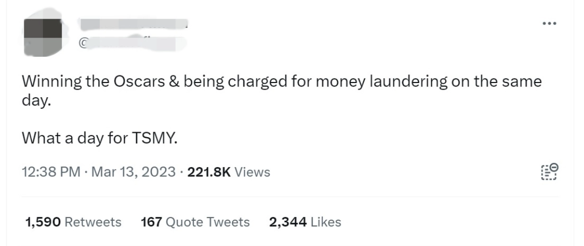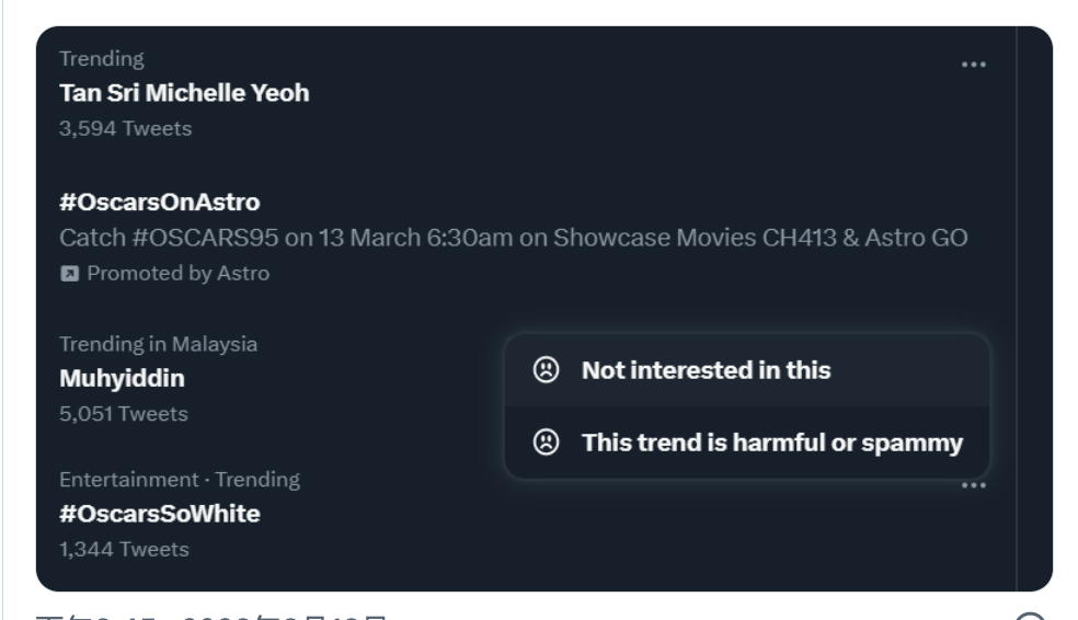 “TSMY”在昨日登上推特热搜,这这4个英文字母,恰恰是两位大人物:新科奥斯卡影后丹斯里杨紫琼(Tan Sri Michelle Yeoh)及前首相丹斯里慕尤丁(Tan Sri Muhyiddin Yassin)名字的缩写!
