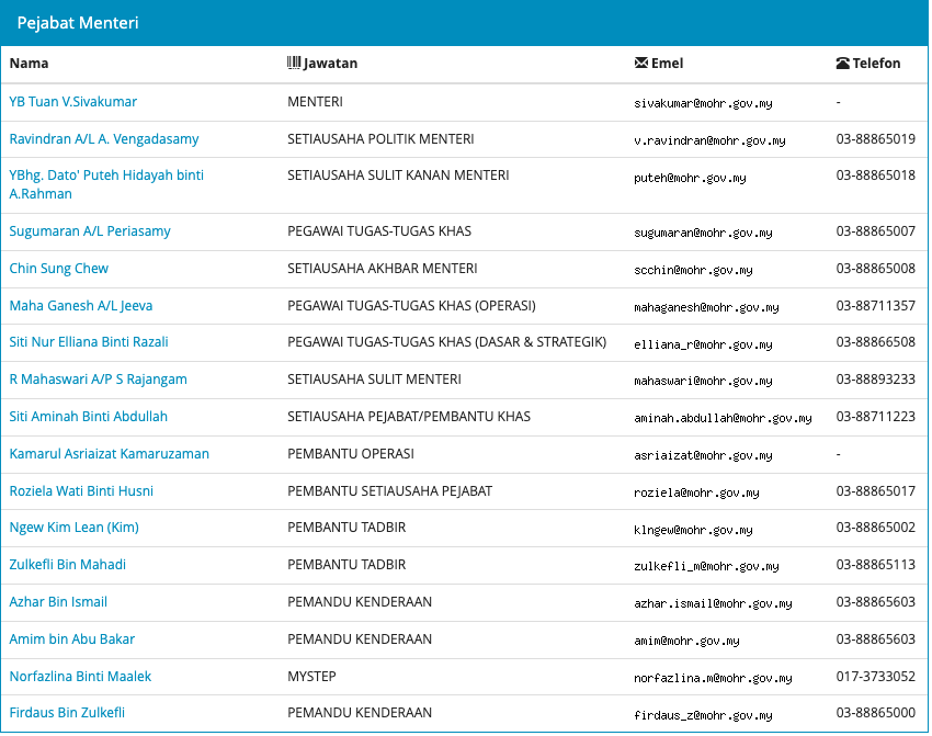 西华古玛的3名官员,包括被大马反贪污委员会逮捕的2名秘书名字原本已从人力资源部官网通讯录中删除,但如今又重新被加入,引起揣测。