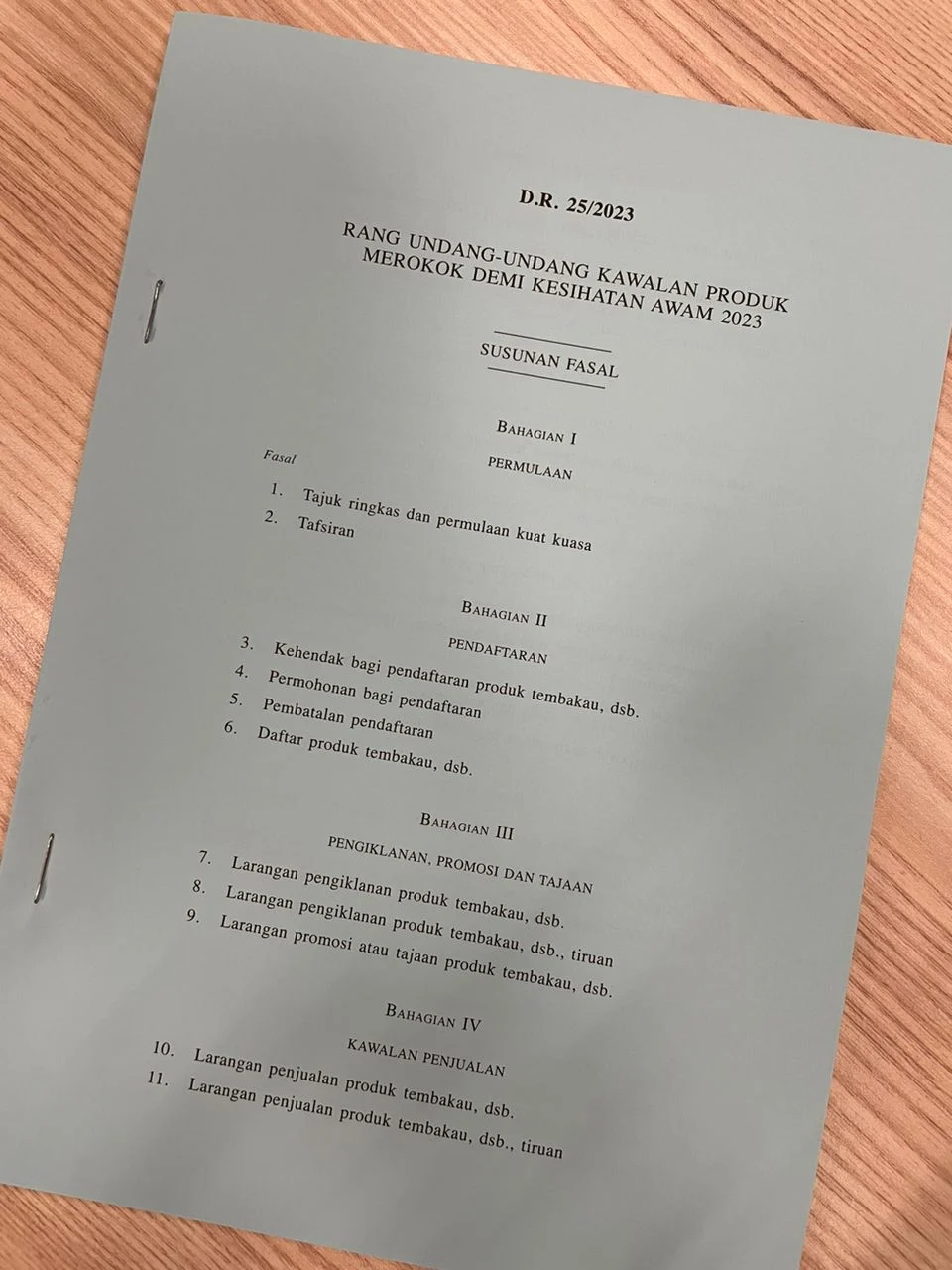 扎丽哈今天也在国会提呈《2023年公共卫生烟草产品管控法案》,即俗称“一代人禁烟法案”,不过,这个法案不会在这次国会寻求通过,这是因为卫长提呈后,援引议会常规第54(1)条文,把法案移交给国会卫生、科学和革新特委会再研究。