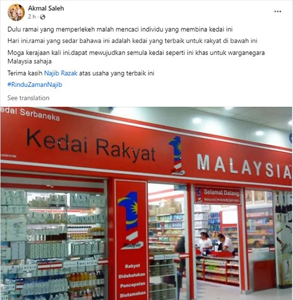 他在脸书撰文说,以前很多人都贬低,甚至侮辱纳吉推出一马人民商店,但现在许多人意识到这个商店是人民的理想选项。