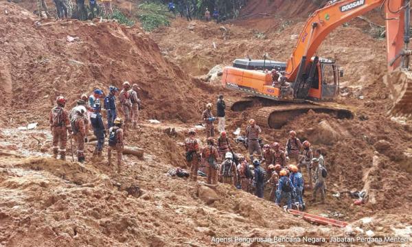 负责国家天灾管理机构(NADMA)的副首相阿末扎希说,根据调查报告指出,由于事故发生前5天及前一个月大量累积雨水才会造成土崩,酿成财物损坏和人员伤亡。