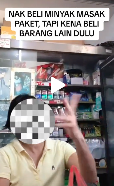根据霹雳国内贸易及生活费部在TikTok上传的短片显示,杂货店老板娘对便服官员说,“若要买超过1袋包装食油,可以,你先买其它杂货吧,什么杂货都行。”