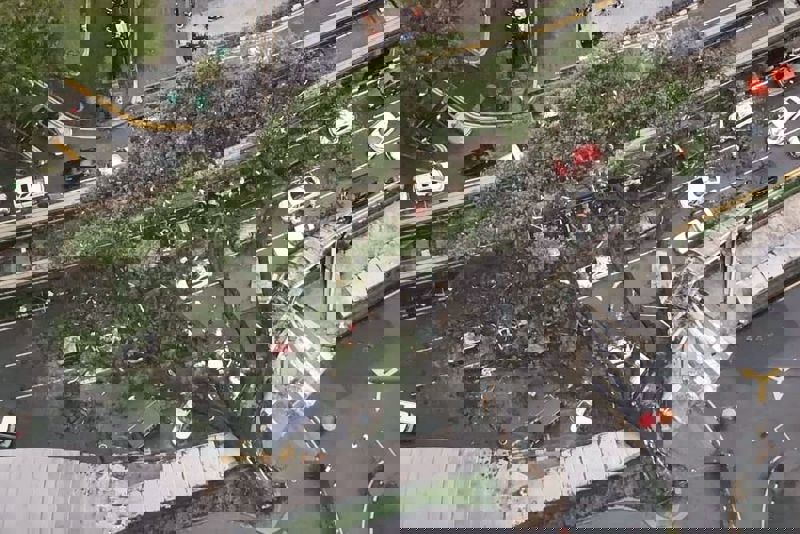 大树倒塌砸中17辆交通工具,毁坏程度不一,除了轿车,也包括的士和客货车在内。