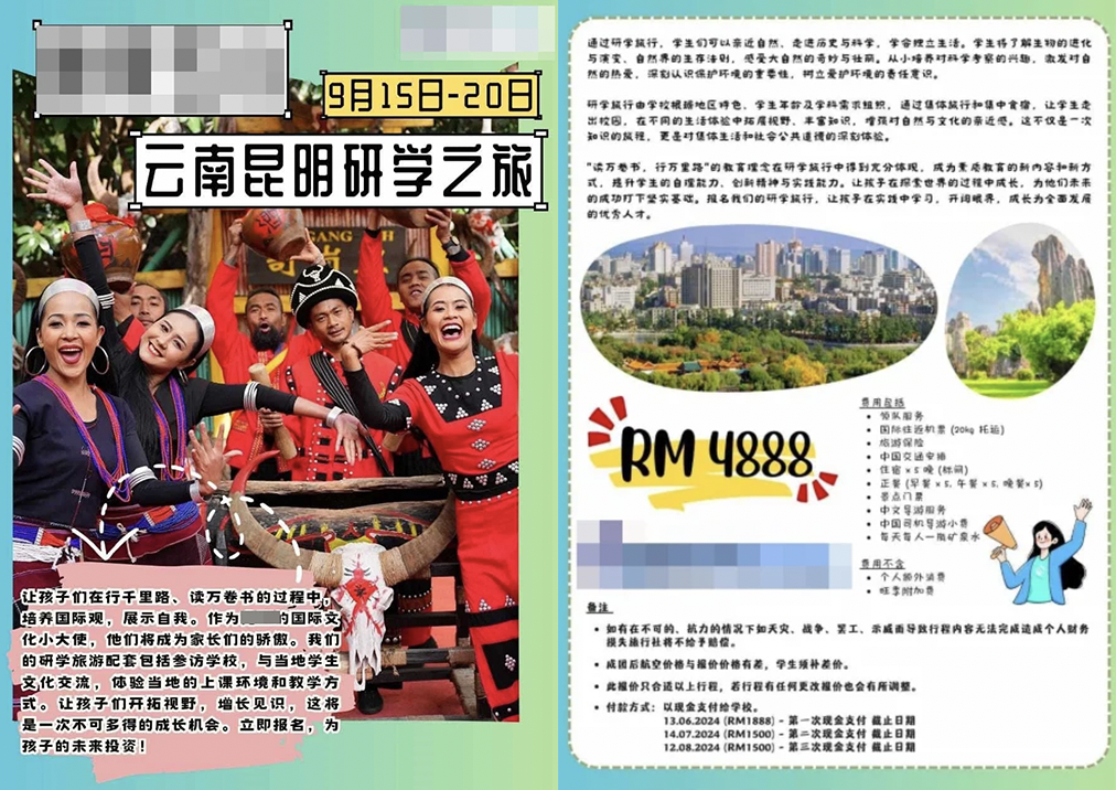 新山一家华小开办中国云南研学之旅,,6天5夜行程要价4888令吉,一曝光马上在网络引发关注及争议!