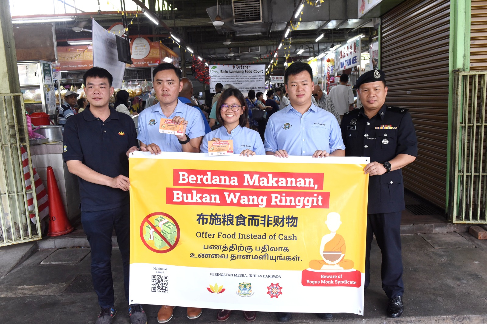 槟岛市政厅鉴定12个经常有“假和尚”出没的巴刹与小贩中心,提醒公众善心别遭骗,布施粮食别给现金!