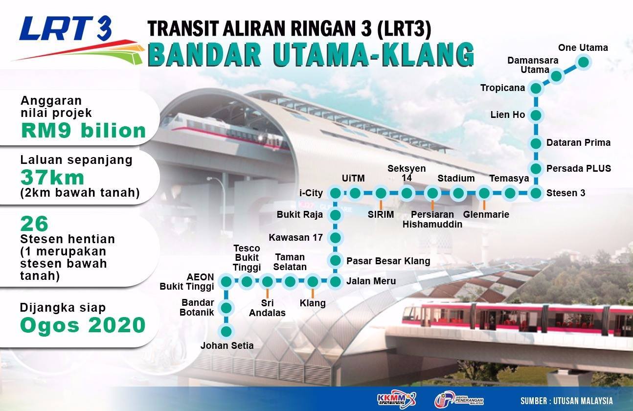 总值47亿令吉的LRT3工程,是从万达镇(Bandar Utama)开始,最终在雪州佐汉瑟迪亚(Johan Setia)结束,这项工程将惠及200万居民。