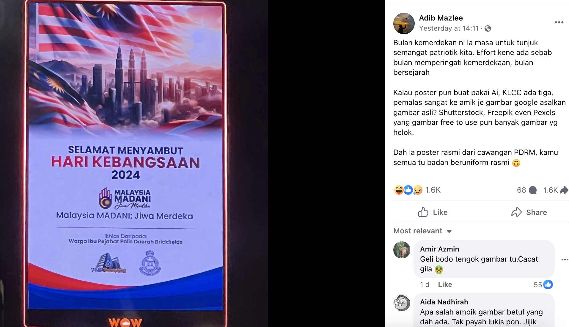 一名网民在其脸书账号@Adib Mazlee上公开表达失望,并强调这种错误在这样一个重要月份根本不应该出现。
