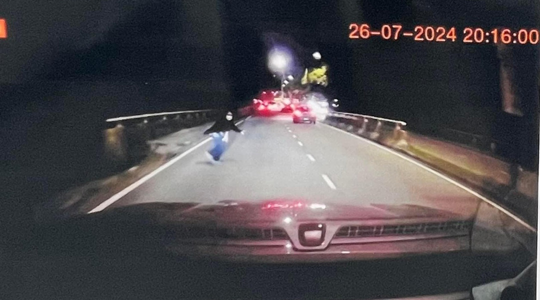 新山南区警方在中元节前夕抓到“鬼”,逮捕这名涉嫌在路旁通过扮“鬼”来制造假车祸“碰瓷”诈财的31岁本地女子。