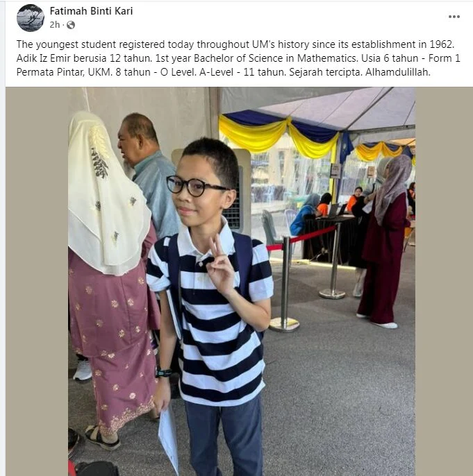 较早前,社媒上广传神童成功考入大学,创下马大有史以来最年轻学生的纪录。