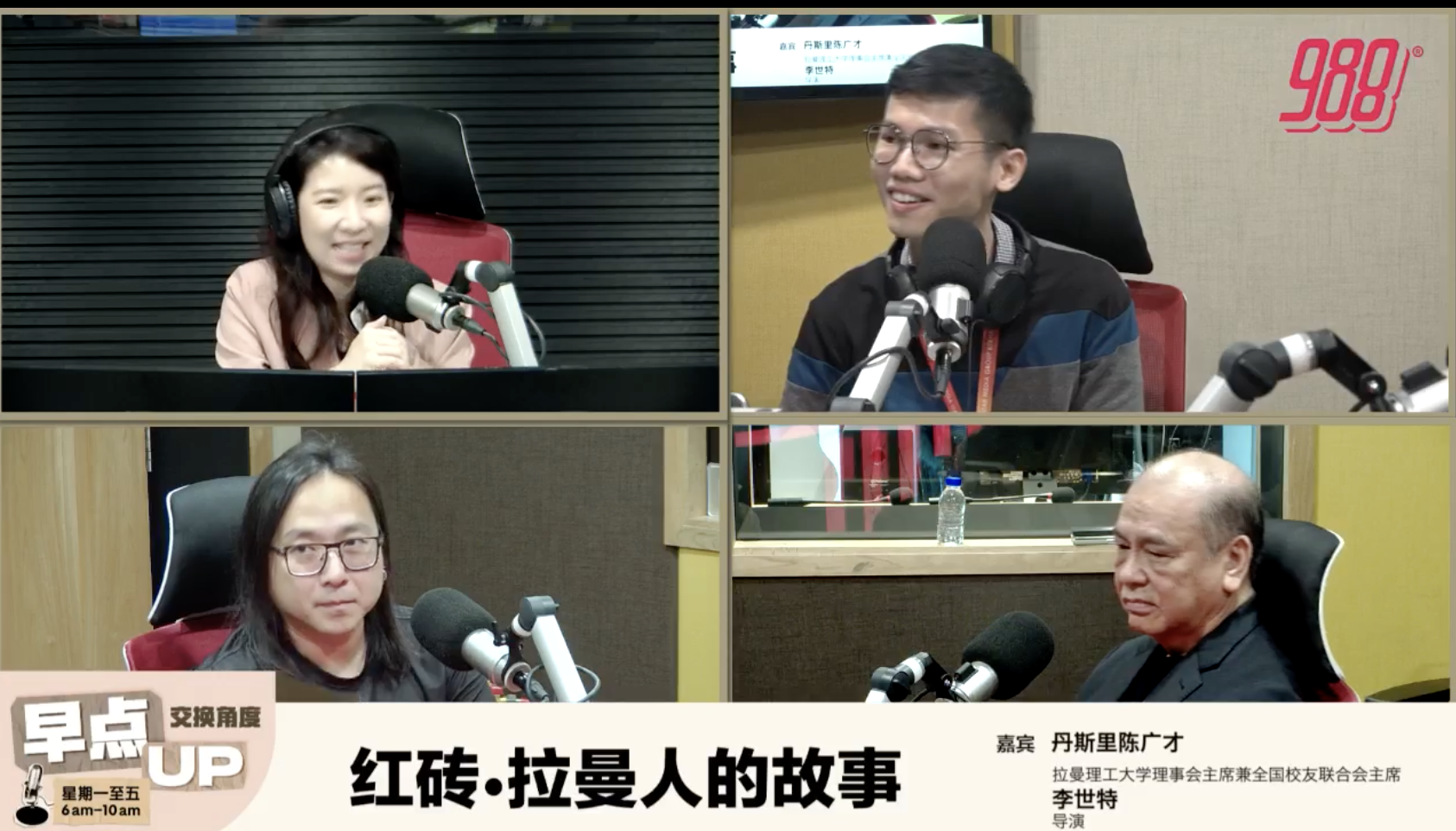 配合电影宣传,拉曼理工大学理事会主席兼全国校友联合会主席陈广才及导演李世特,也在今早来到《988早点up》,分享他们对开拍这部电影的过程。