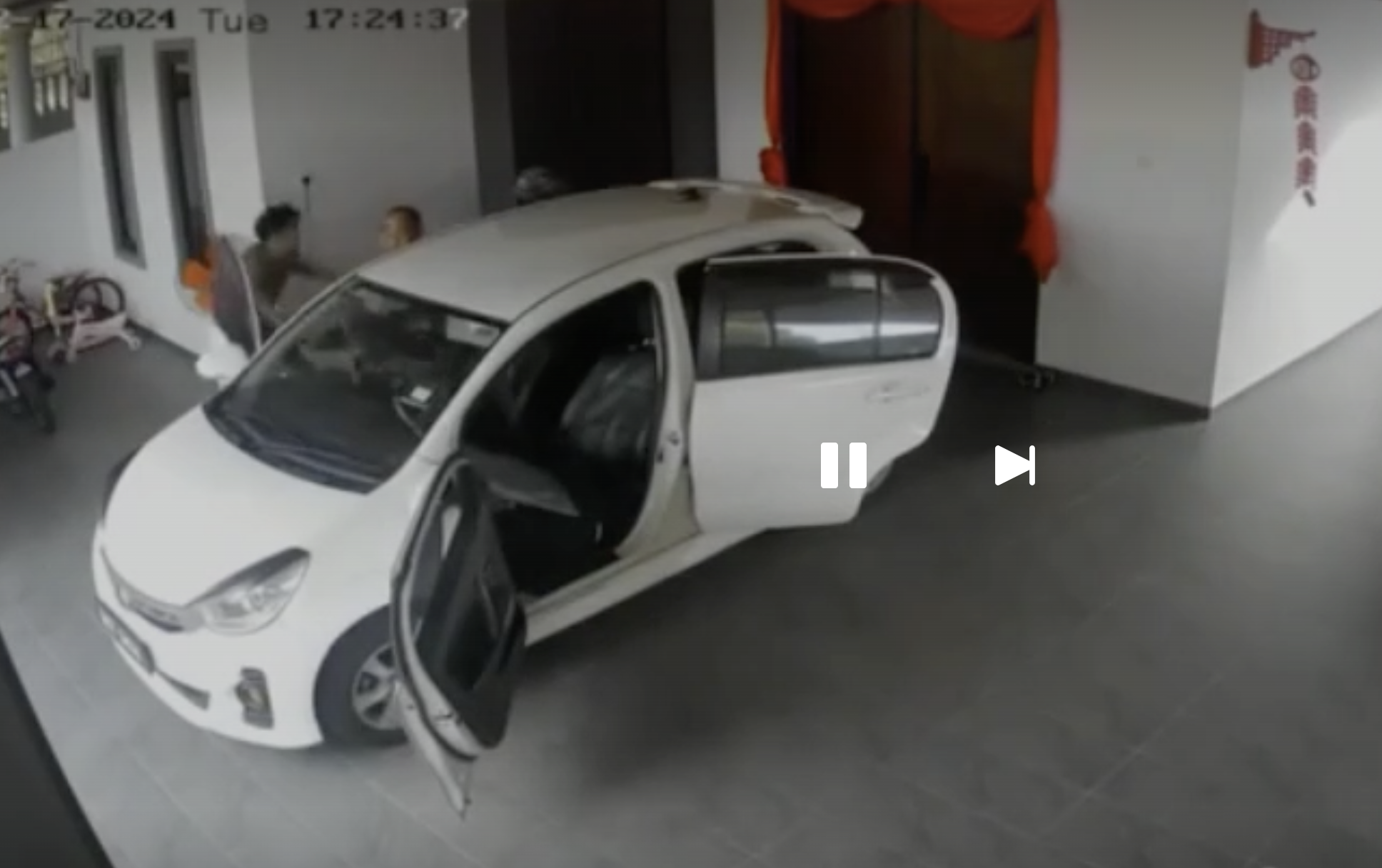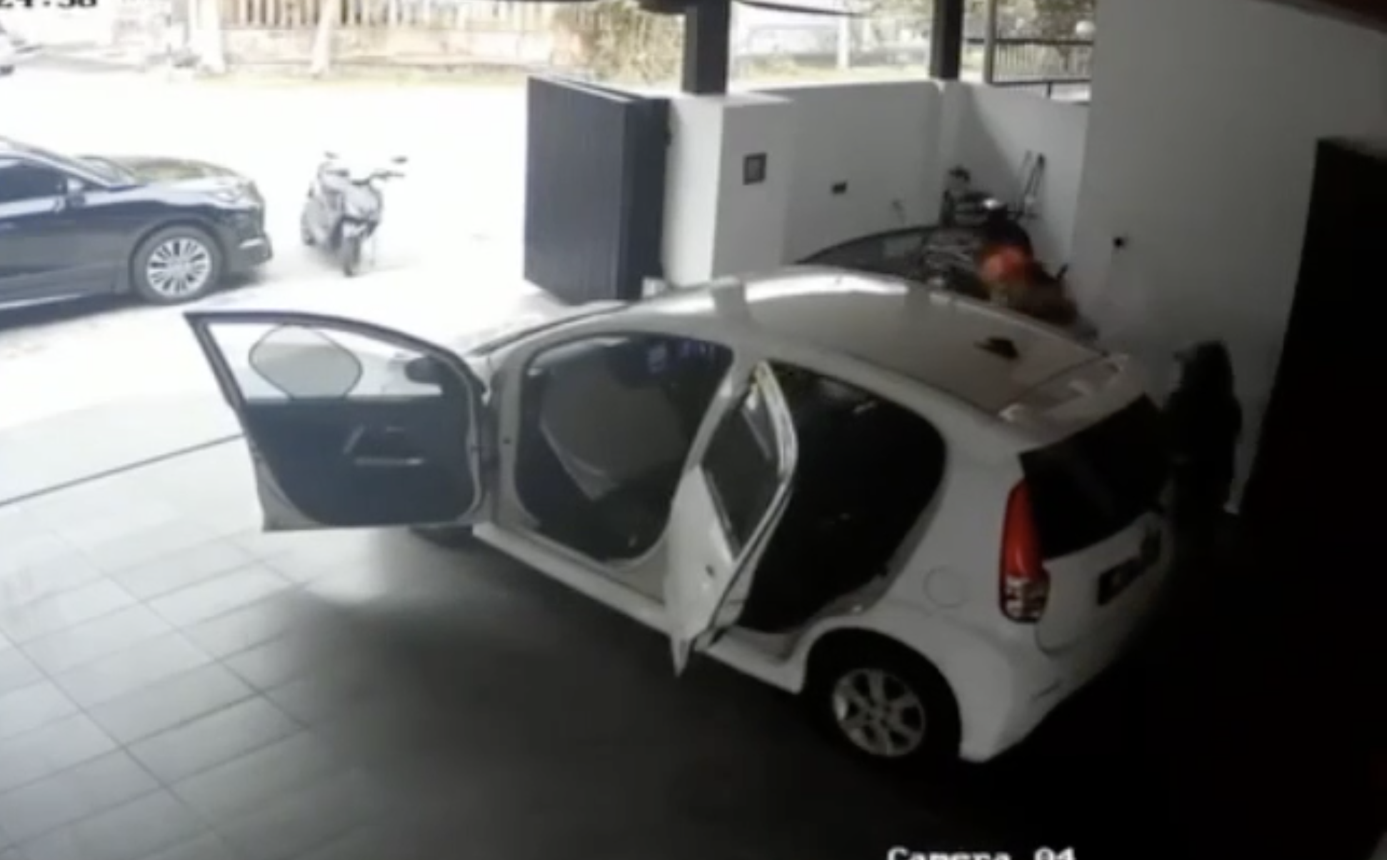 根据报道,从闭路电视录影显示,这两名蒙面贼共车来到该屋,企图撬开屋子大门不果后,攀越大门进屋,迅速从屋子侧门潜入,在进入屋内取了大门锁匙后,再开启大门,肆无忌惮的把贼车就这样开入车房,准备大肆盗窃财物。