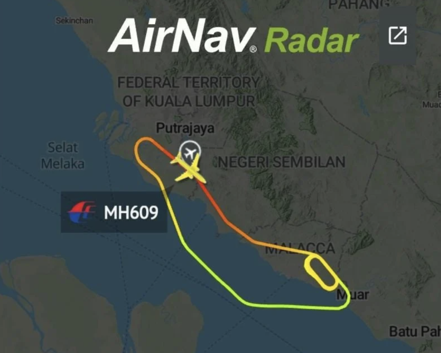 结果,根据飞行追踪网站Flightradar24数据显示,班机昨晚11时28分起飞后 凌晨12点44分就突然折返,飞行轨迹显示,班机起飞不久就飞到麻坡空域,一度在马六甲上空盘旋两次,最终飞回吉隆坡。