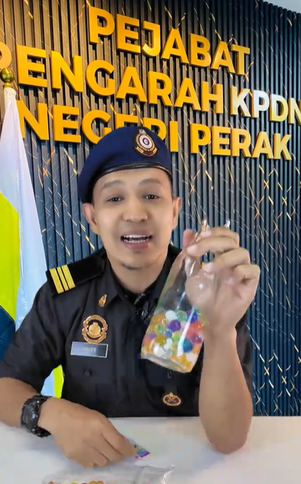 根据霹雳州贸消局在TikTok发布的视频,执法人员在接到民众投诉后前往一家商店检查,发现水晶宝宝与糖果、零食混放在一起出售。