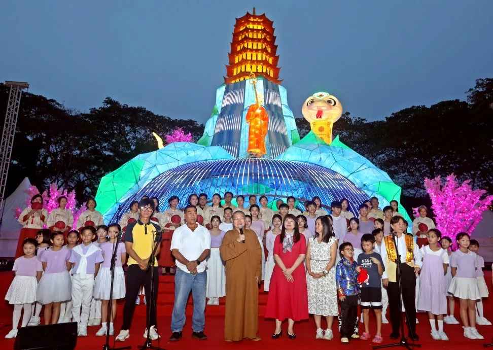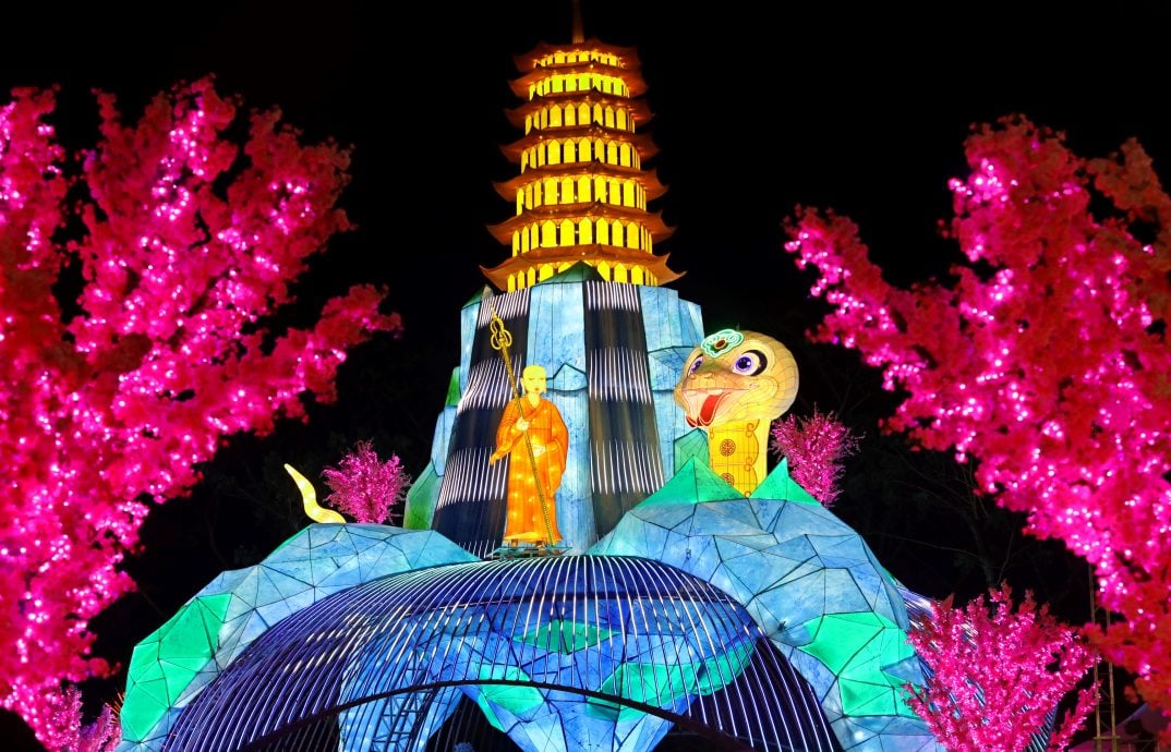 适逢蛇年到来,这次主题是“向前有路,光明在望”,在祝福大众勇敢走出去、精进努力光明就在前方外,东禅寺也打造了一座22米约6层楼高的“白蛇传”主题灯及雪兰莪凤凰报喜花灯,成为今年灯会的最大亮点。