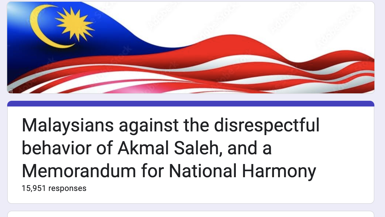 这项名为“大马人反对阿克玛无礼行为及国家和谐备忘录”,联署运动在昨晚11时59分截止,超过1万1720人签名联署。