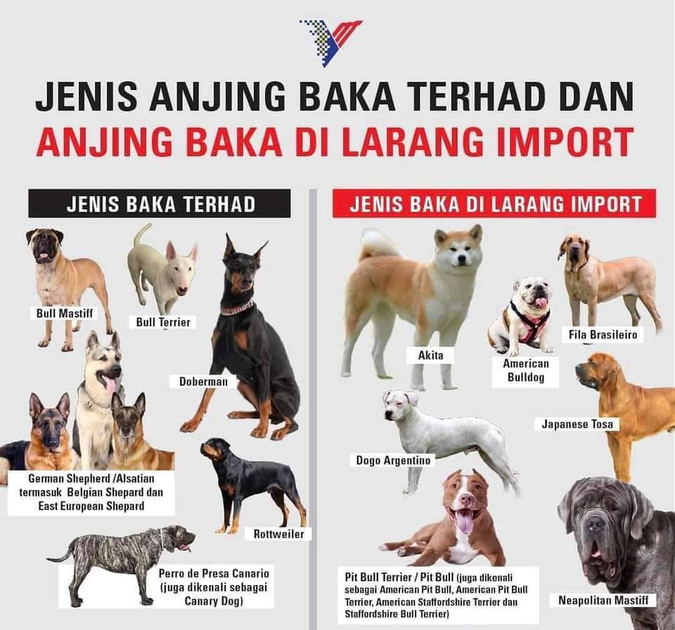 事实上,大马兽医局曾列出13种限制入口及禁止入口的繁殖犬名单,表明这些狗狗不当宠物狗饲养,当中多种令人熟悉的名犬包括德国牧羊犬、美国斗牛犬、秋田犬及杜宾犬等。