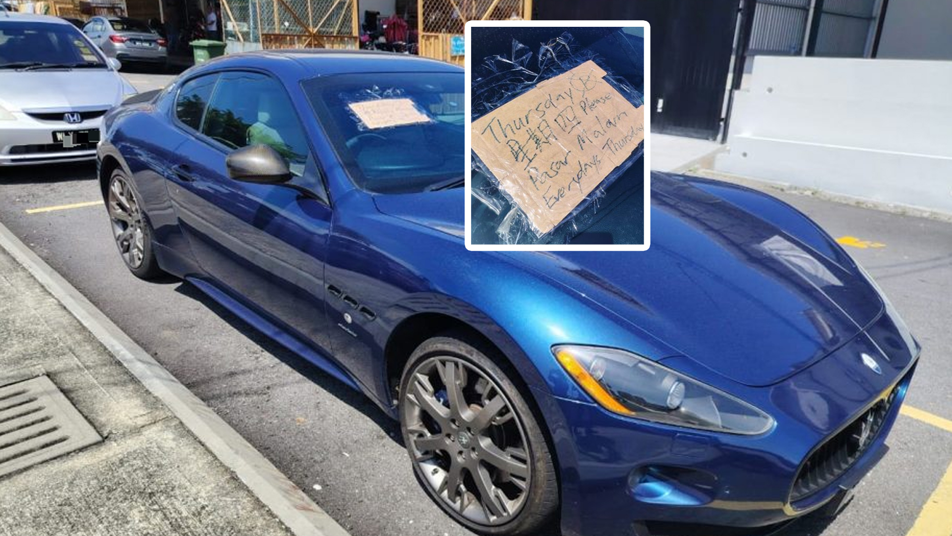 不愿具名的受访者表示,两人的轿车最后停在距离案发单位约130米的露天停车场,而该停车场每逢周四都有夜市,由于轿车阻碍摊位布置,有小贩在其挡风玻璃上贴上纸板提醒车主移车。