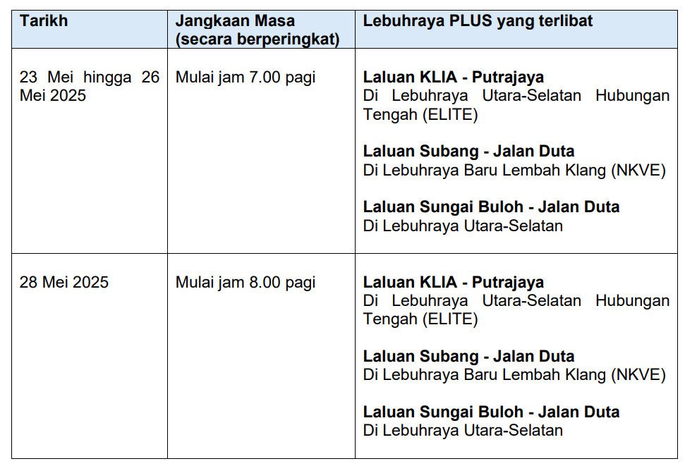 此外,南北大道公司(PLUS)也发文告呼吁民众,提早规划行程,尤其是前往吉隆坡国际机场和梳邦空军基地的驾车人士。