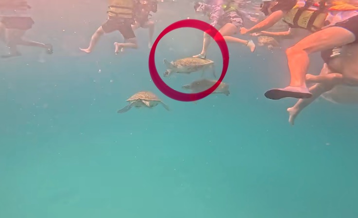 事件发生于本月22日,一群游客搭船前往热浪岛海域浮潜期间,遇见多只正在水中悠游的海龟。