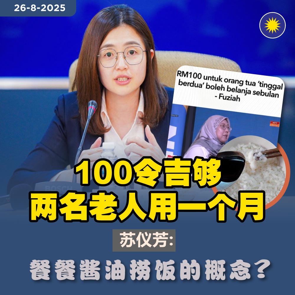 国内贸易及生活成本部副部长傅芝雅指出,虽然100令吉援助金对某些人来说数额不大,但这笔钱足够应付两个老人一个月基本开销。