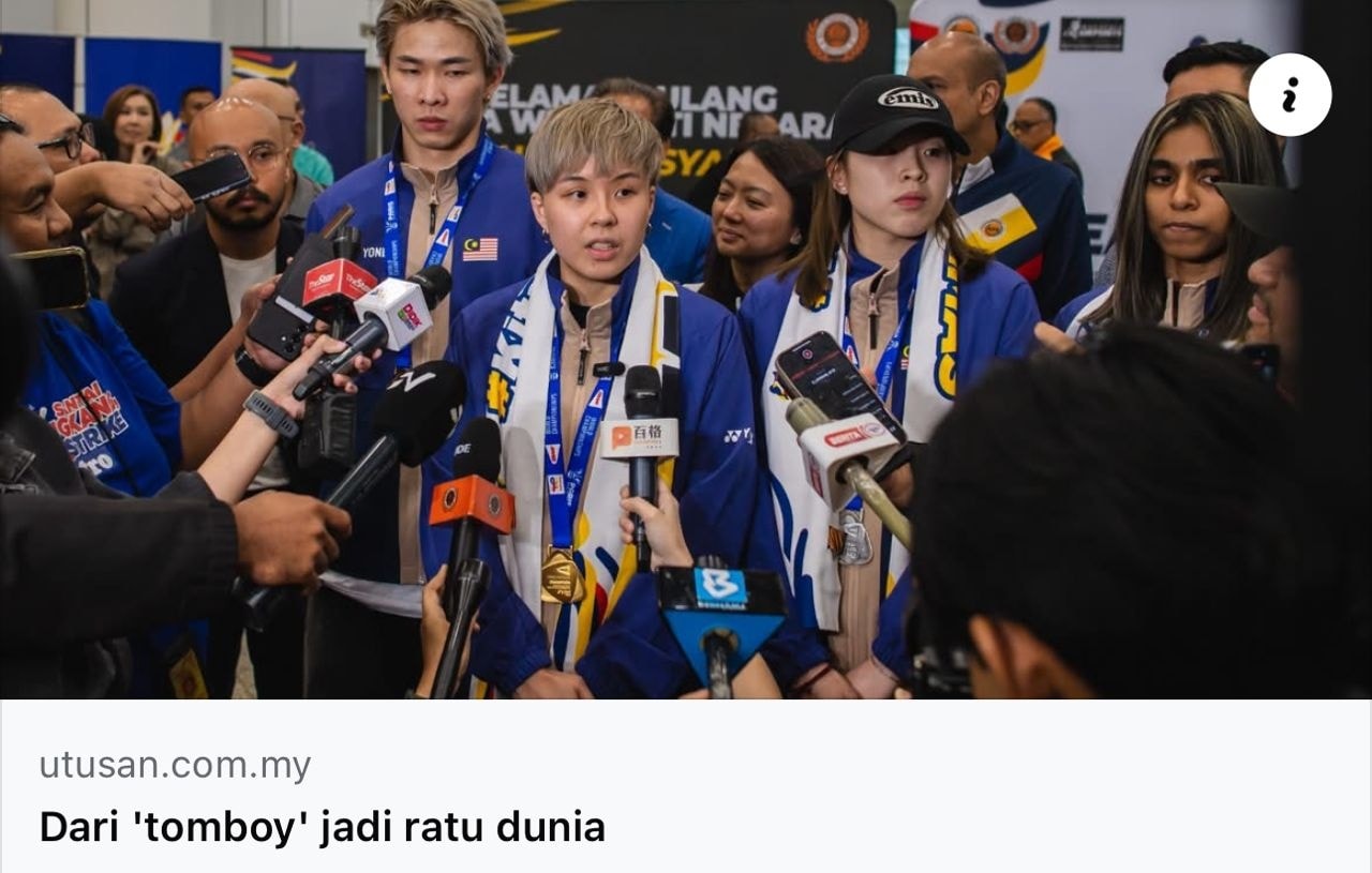 她强调,杜依蔚让大家看到的,不仅是一个美好女孩的样子,更是世界冠军的样子,值得所有大马人为她欢呼和感到骄傲。