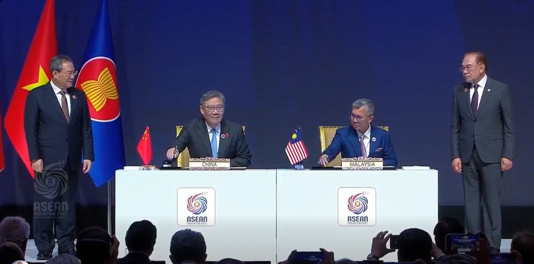 签署仪式由东盟轮值主席国首相安华与中国国务院总理李强共同见证,文件由投资、贸易及工业部长东姑扎夫鲁与中国商务部长王文涛代表签署。