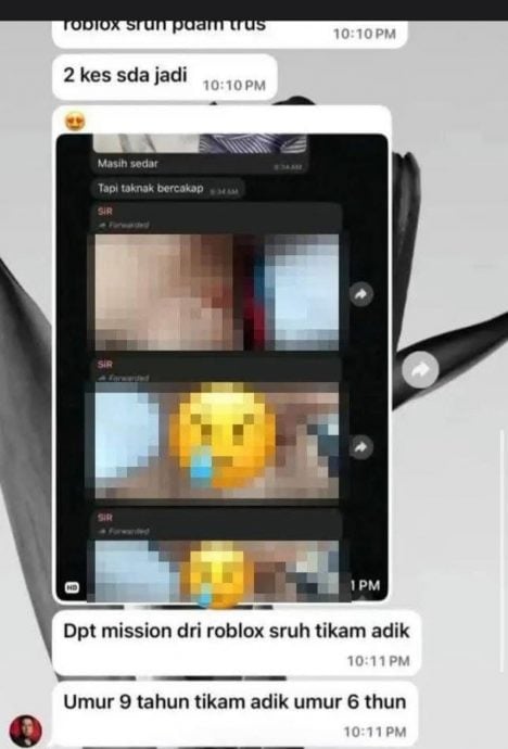 “根据初步资料,哥哥的手机内安装了网络游戏Roblox,并累积约100万积分。事发前,弟弟疑似不慎弄坏哥哥的手机,导致积分消失。”