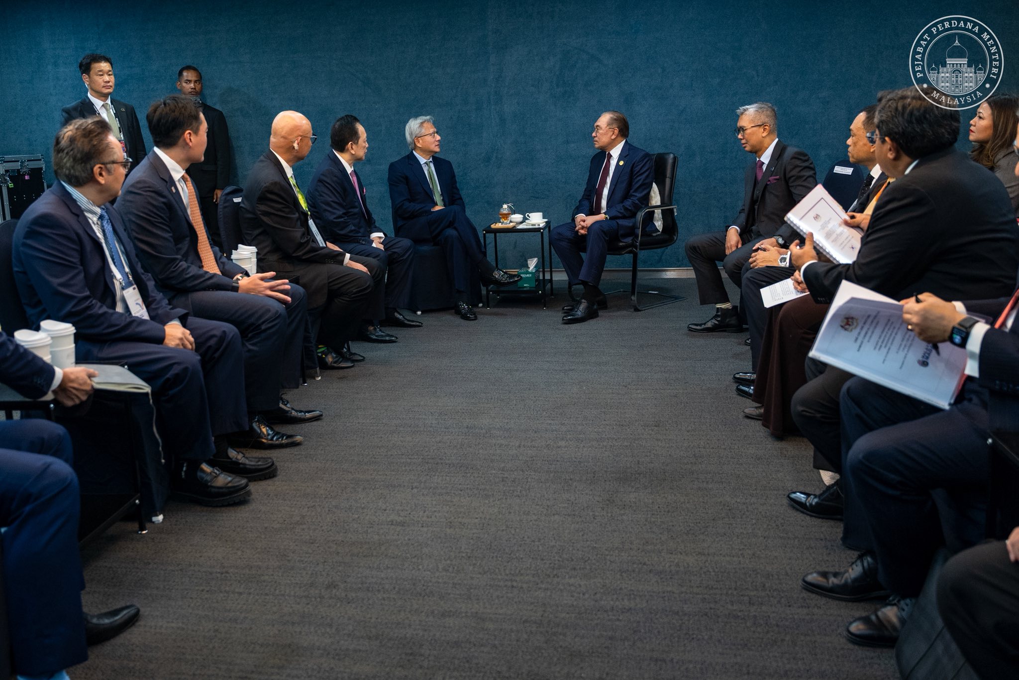 首相安华飞赴韩国出席APEC峰会,并在今日跟英伟达总执行长黄仁勋及杨忠礼电力公司董事经理杨肃宏,进行了一场意义非凡的会谈。