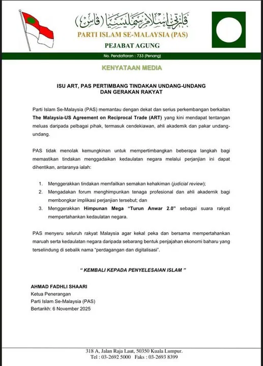 伊党宣传主任阿末法德里发文告说,该党对政府签署的《马美互惠贸易协定》表示强烈反对,因此不排除发动“倒安华2.0”大型集会。
