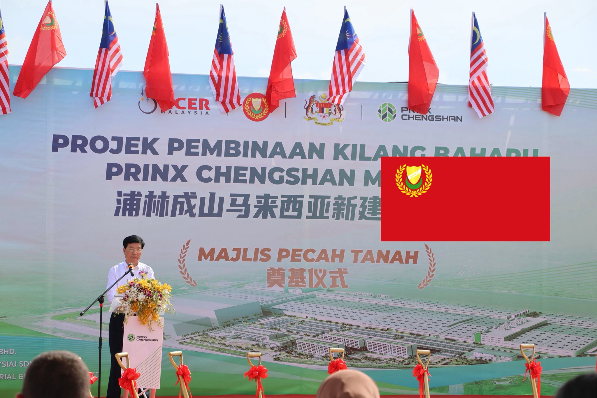 来自中国山东省的浦林成山集团旗下的Prinx Tire(马)有限公司,日前正式进驻吉打橡胶城,奠基仪式上的石碑仅出现“奠基”中文字,在网上引起争议,更有网民指嘉宾的名称全以中文字呈现,活动展示牌上飘扬中国国旗等。