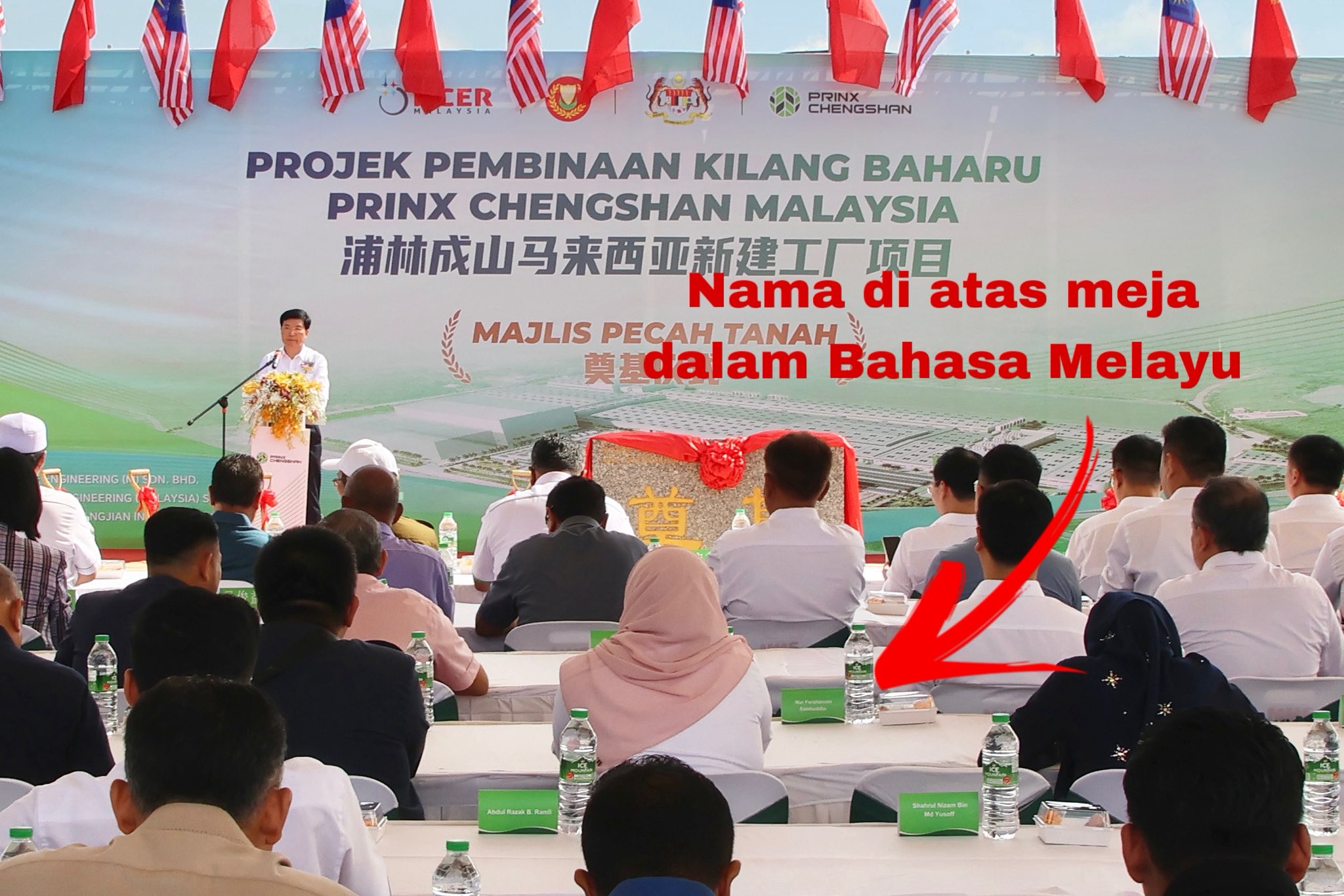 他也晒出其马来文演讲稿,及嘉宾的座位名卡也是以马来文书写。