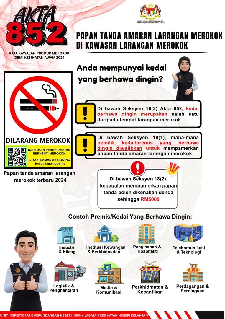 尽管如此,公司表示理解并支持无烟政策,同时提醒中小企业者检查营业场所是否已张贴合规标志,以免在不知情下受罚。2024年公共卫生烟草与吸烟产品管制法令(第852法令)强制规定所有商店、公共场所经营者,均须按照卫生部制定的规范,张贴禁烟标志。