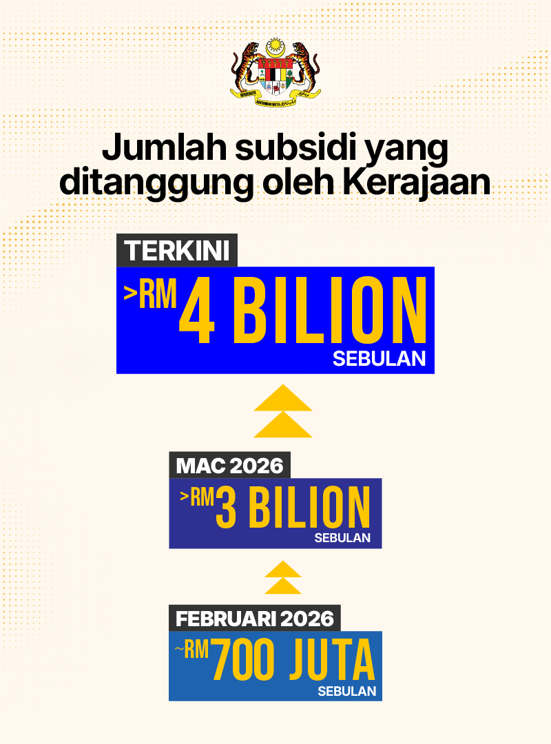 他指出,数据显示,2026年1月RON95与柴油补贴约为7亿令吉;在国际油价约每桶90美元时,每月补贴约达30亿令吉;如今随着油价升至100美元水平,相关补贴已飙升至每月约40亿令吉。