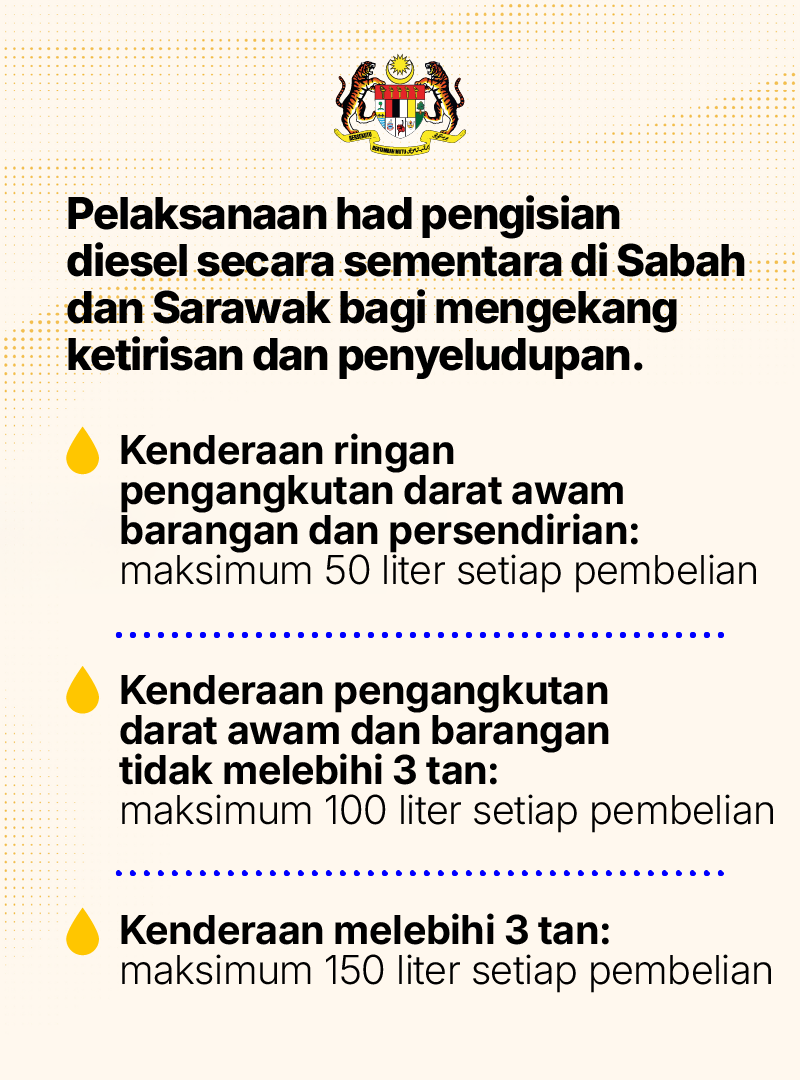 安华同时也宣布,东马沙巴及砂拉越也会实施柴油限额临时措施,进一步遏制补贴流失及走私活动情况。
