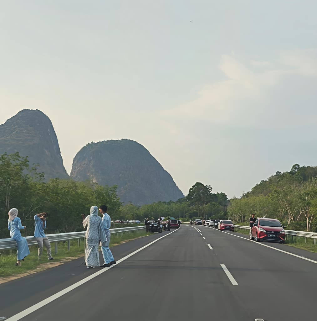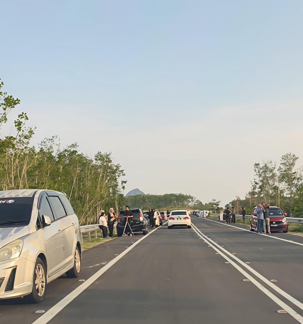 据了解,这条道路早在斋戒月期间便开始受到关注,到了开斋节期间更出现明显人潮与车流聚集的情况,热度延续至今。