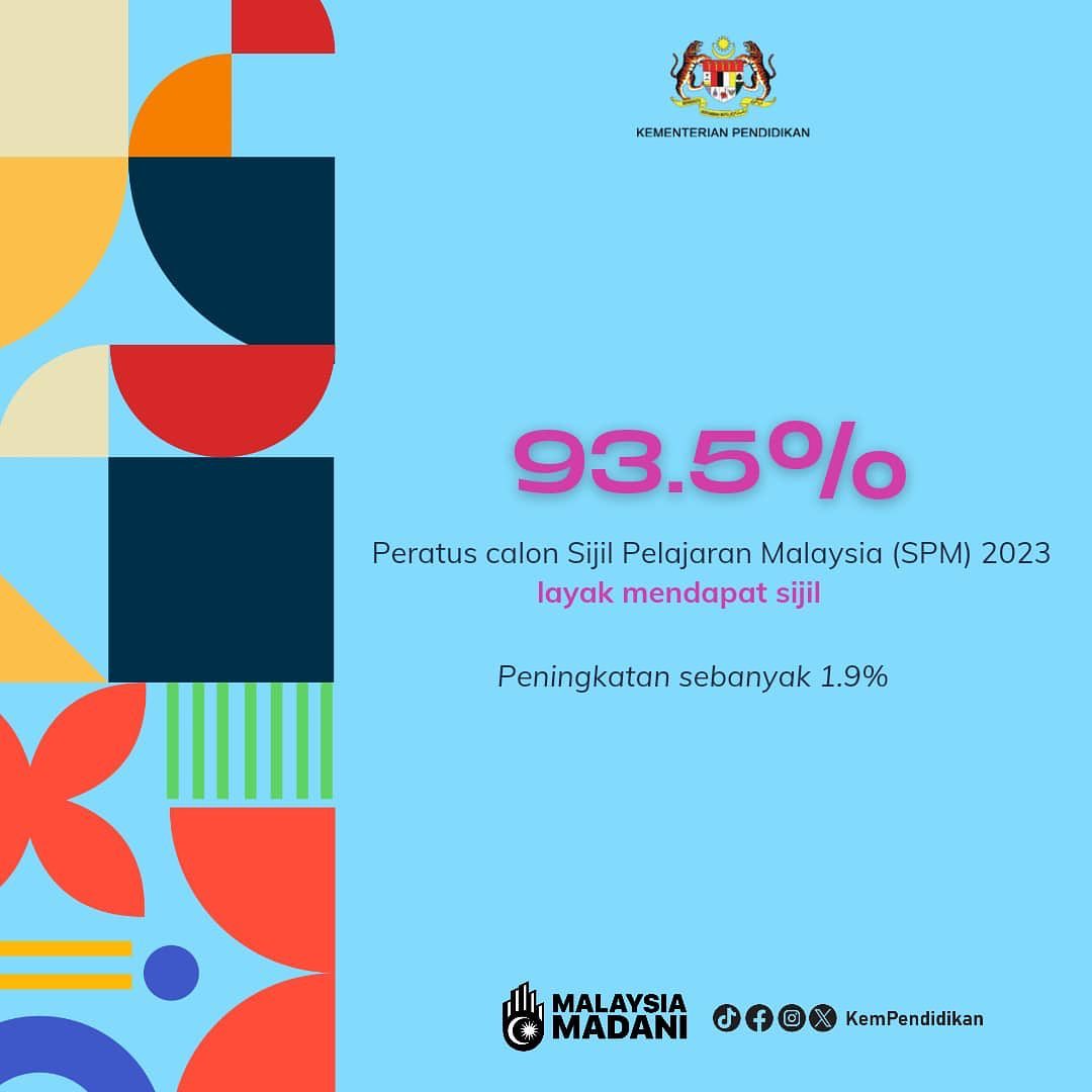 2023年大马教育文凭共有37万3525名考生,93.5%或34万9297人获得文凭资格。