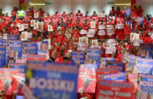 会场内的党员几乎每人手持一张海报,在唱党歌后,巫统党员更是高喊“Malu Apa? Bossku!”口号。