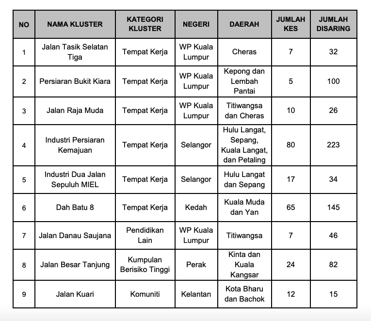 📌新增9个感染群,分别6个职场感染群、社区感染群、高风险感染群及教育感染群各1个