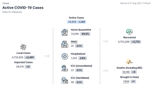 卫生部COVIDNOW网站通报,截至27日11.59pm,我国新增 #2491例,累计病例至今 #4,774,003宗。