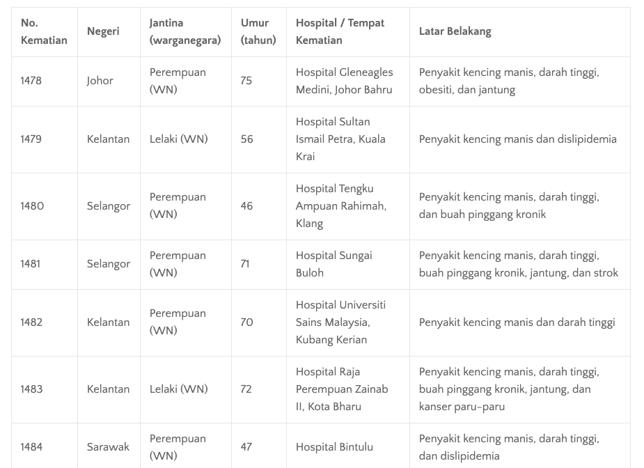 📌今天有15人死,分别4宗来自吉隆坡、3宗来自雪兰莪、2宗来自砂拉越、柔佛及沙巴各1宗。