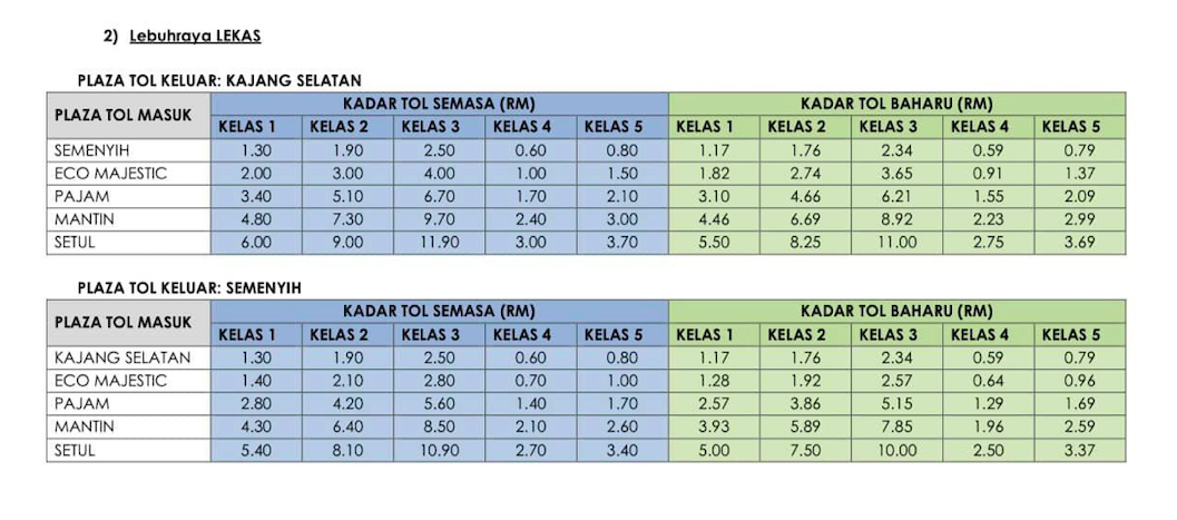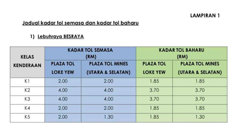 工程部长阿历山大宣布,明天1月1日午夜12时1分起,新街场大道(BESRAYA)和加影—芙蓉大道(LEKAS)过路费将降低,降幅介于15至50仙左右。