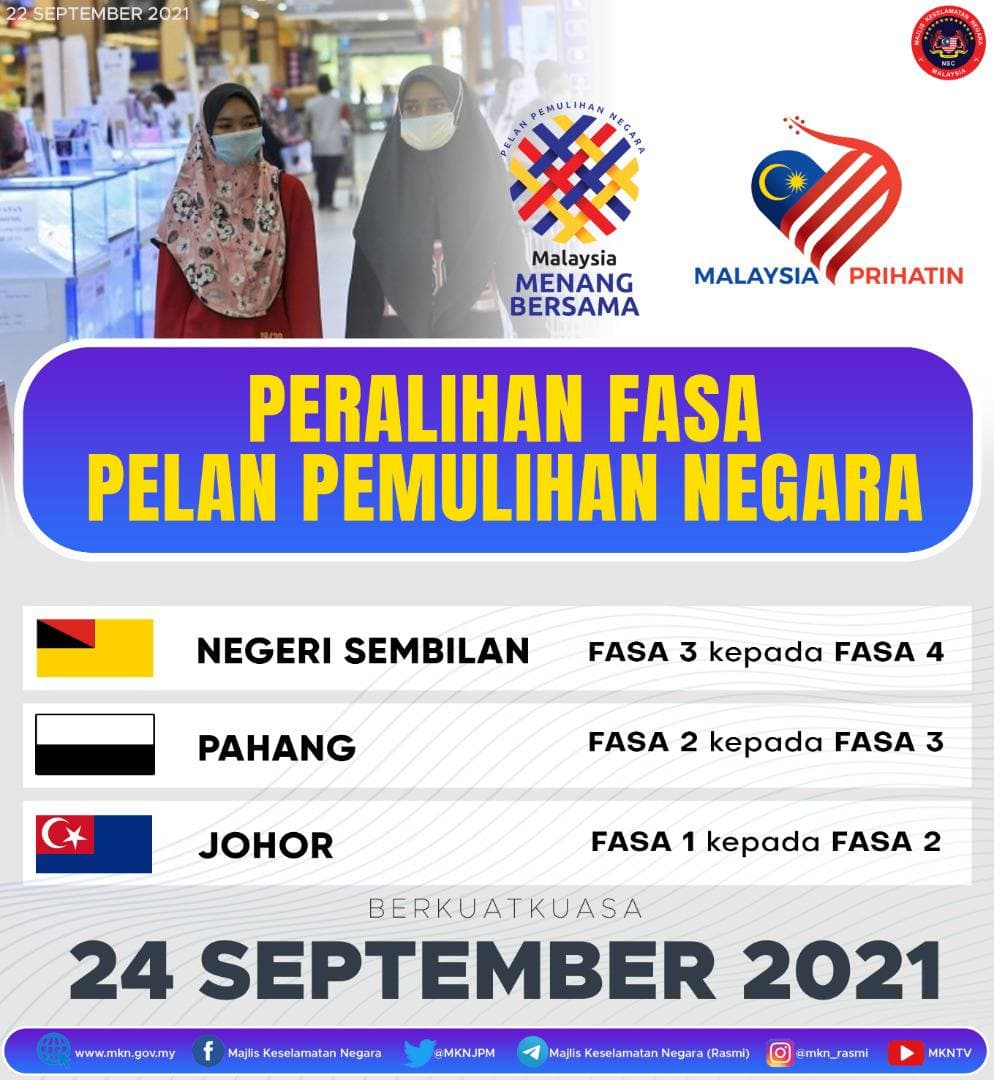 📌柔佛进入国家复苏计划第二阶段、彭亨进入第三阶段,而森美兰进入第四阶段