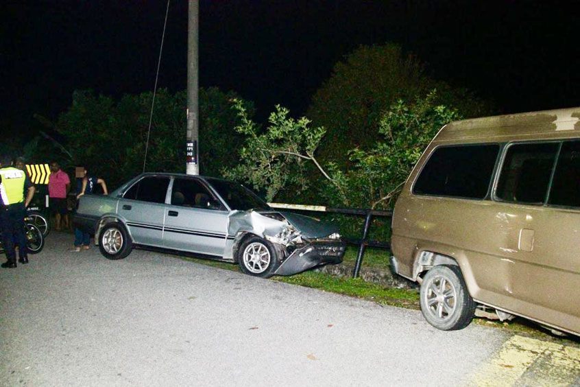 上述事件发生在森美兰州芙蓉某花园,一名10岁男童驾着父母车,还载着9岁邻居外出,没想到酿连环车祸,在转弯处时车子撞到停在路边的客货车,造成 客货车滑行再撞到前面轿车。